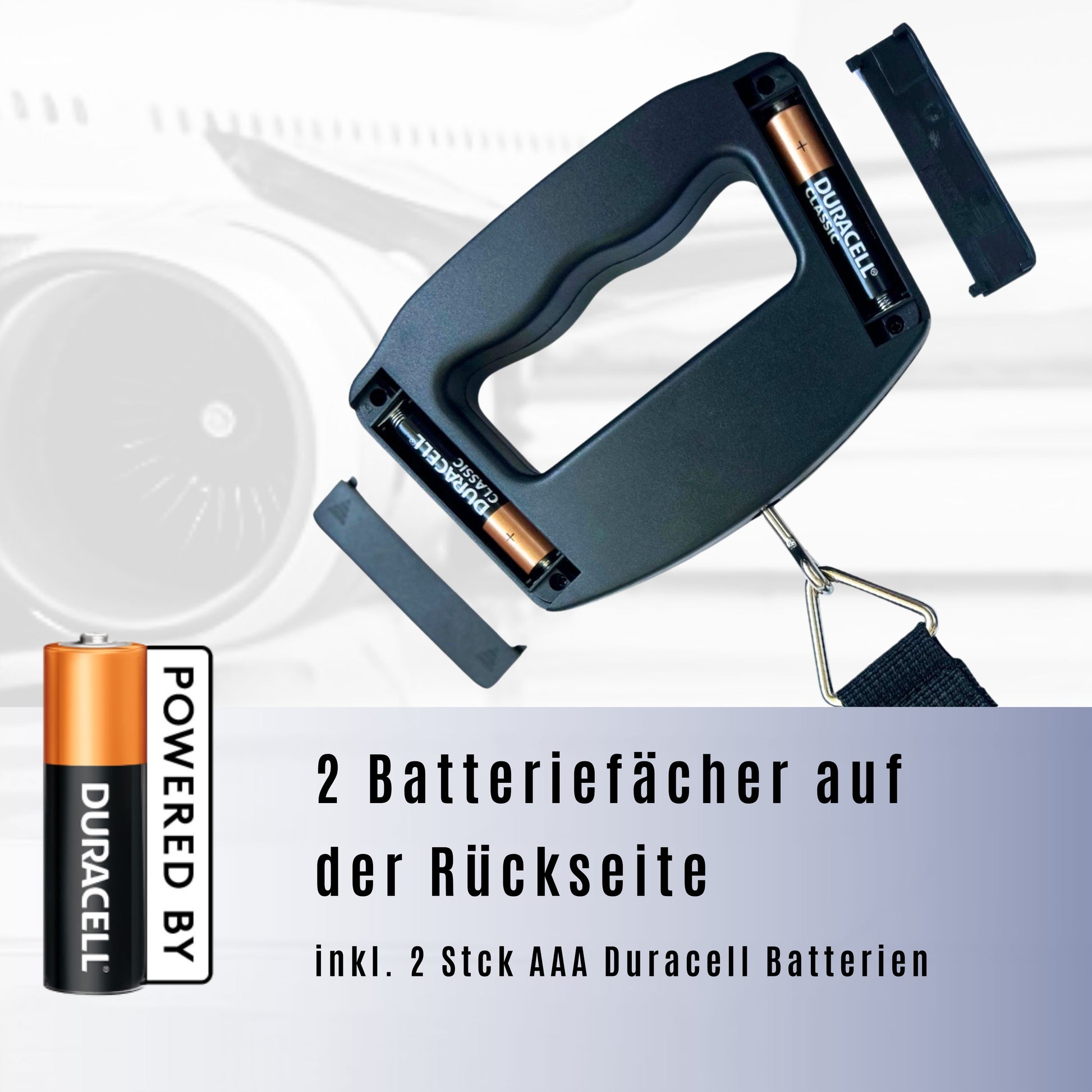 - Langlebige Energieversorgung mit 2 × AAA-Batterien Die Verwendung von zwei AAA-Batterien sorgt für eine längere Laufzeit im Vergleich zu Geräten mit Knopfzellen. Die lange Haltbarkeit ist besonders deswegen vorteilhaft, da Ersatzbatterien in der Regel nicht im Fluggepäck mitgeführt werden dürfen. Dank der im Lieferumfang enthaltenen Batterien ist die Waage sofort einsatzbereit.